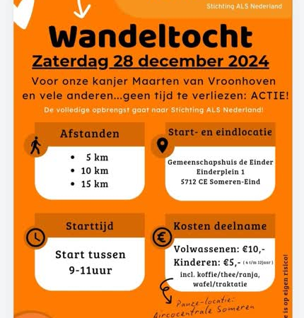 De familie van Maarten en Lenny van Vroonhoven organiseert een wandeltocht waarvan de opbrengst best...