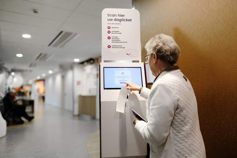 Als tweede scan je het dagticket bij de aanmeldzuil bij de afdeling waar de afspraak plaatsvindt. De patiënt is dan aangemeld voor zijn afspraak.