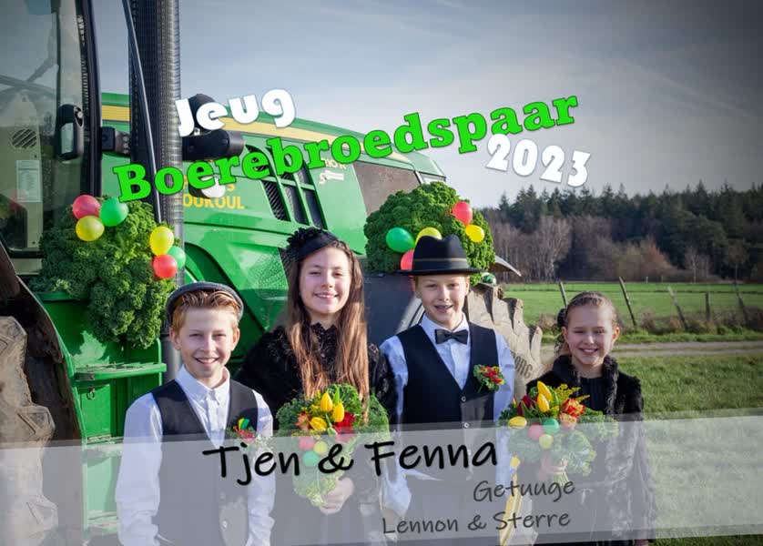 Bij de jeugd werden Tjen Metsemakers en Fenna Cox gekozen. Zij zijn het Jeugd-Boerebroedspaar van dit jaar. Hun getuigen zijn Lennon Kuijpers en Sterre Gommans.