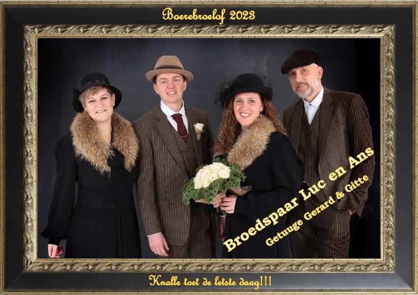 De getuigen zijn Gerard en Gitte Janssen-Geraedts. De Boerebroelof wordt gehouden op carnavalsdinsdag, 21 februari. Het boerebruidspaar wordt dan in het on-echt met elkaar verbonden.