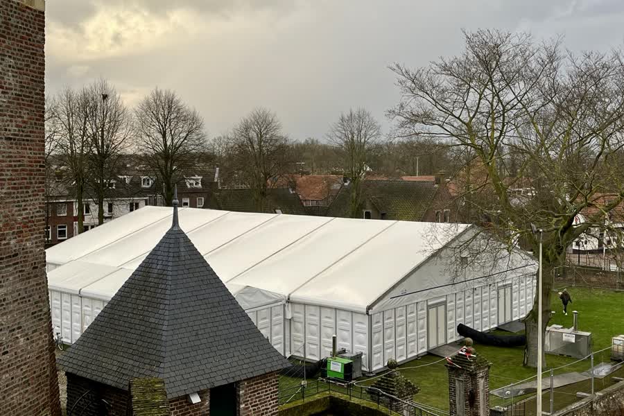 Op het grasveld van Kasteel de Keverberg is de grote feesttent geplaatst waar de activiteiten van CV De Kevers gaan plaatsvinden. Omdat de verbouw van MFA De Paort vertraging heeft opgelopen, dient de tent in de Kesselse kasteeltuin als noodverband.