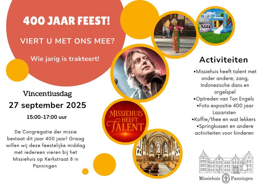 De jaarlijkse Vincentiusdag staat op zaterdag 27 september op het programma. Dit jaar heeft de dag een bijzonder tintje: de Congregatie der Missie bestaat 400 jaar.