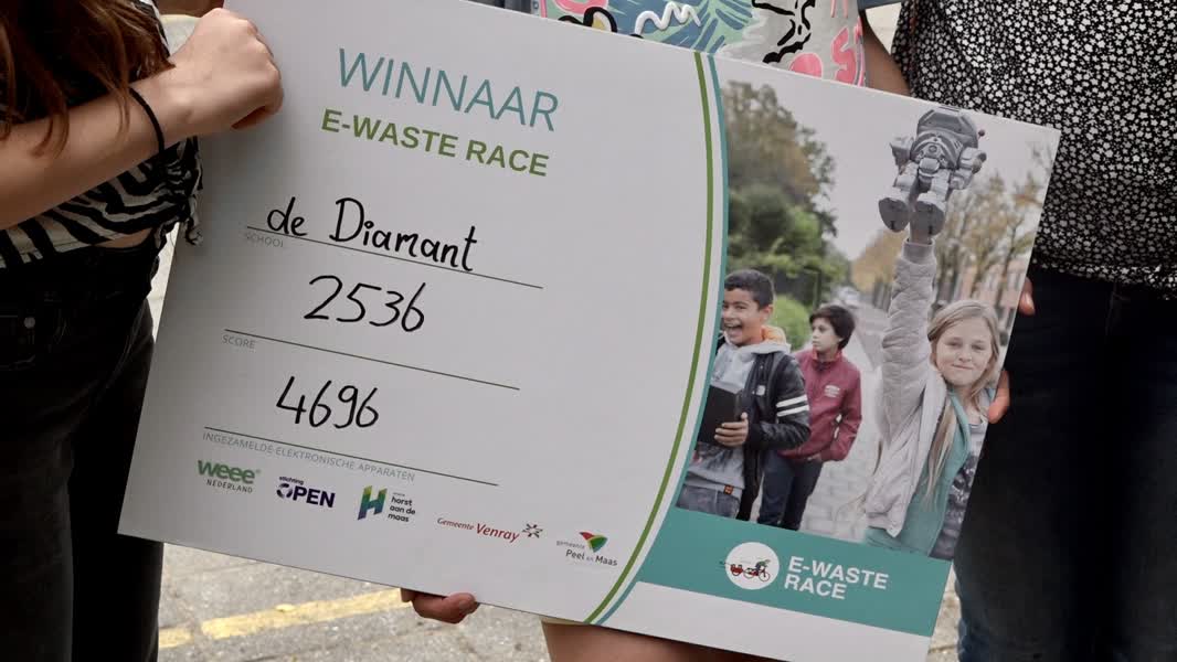 De stemming kon niet beter donderdag op De Diamant in Baarlo. De basisschool haalde de meeste elektrische apparaten op en won daarmee de E-waste Race. De Diamant ging samen met scholen uit de gemeenten Peel en Maas, Horst aan de Maas en Venray de strijd aan.
