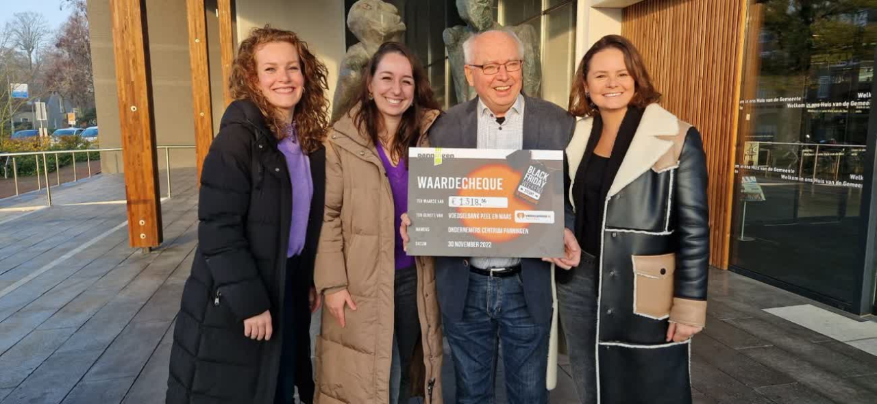 Ruim 1300 euro heeft de actie tijdens Black Friday in het winkelcentrum van Panningen opgeleverd voor de Voedselbank. Klanten konden het afgelopen weekend een donatie geven aan het goede doel.