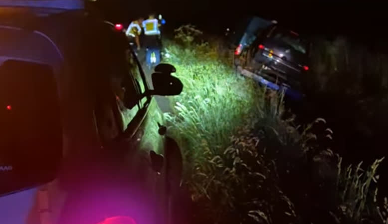 Een bestuurder is in de nacht van zondag op maandag met zijn voertuig in een greppel naast de A67 ter ho...