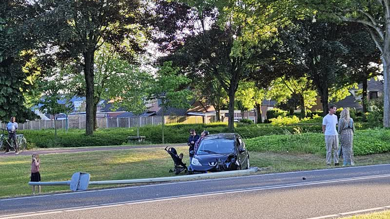 Een bestuurder is zaterdagavond met een auto tegen een lantaarnpaal gereden op de John F. Kennedylaan in...