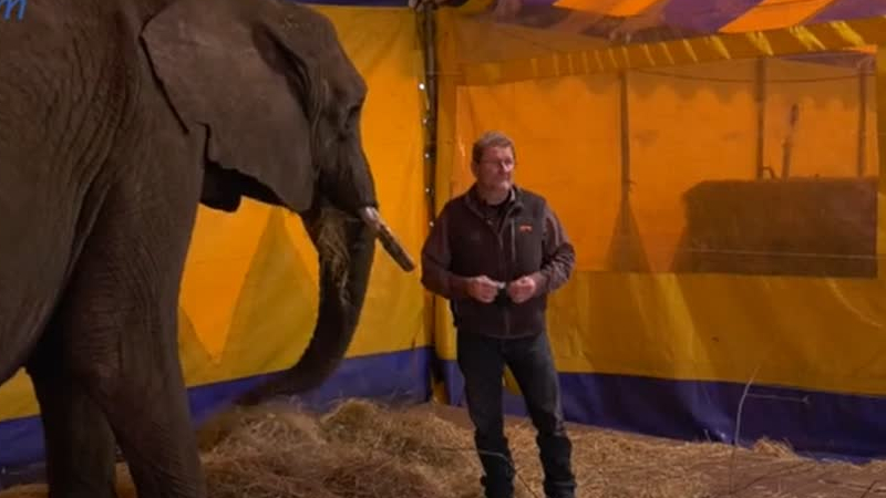 Olifant Buba, die anderhalf jaar in Beringe verbleef, heeft circusfamilie Freiwald verlaten. Een dierenp...