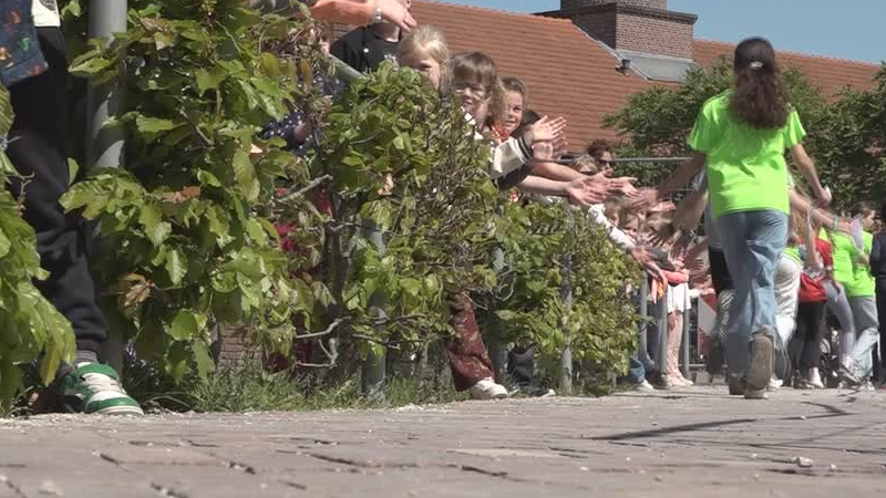 De kinderen van basisschool De Groenling in Panningen kwamen dinsdag massaal in actie voor KWF Kankerbes...