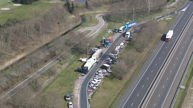 Op parkeerplaats De Slenk aan de A67 ter hoogte van Grashoek heeft de politie vrijdag een grote controle...