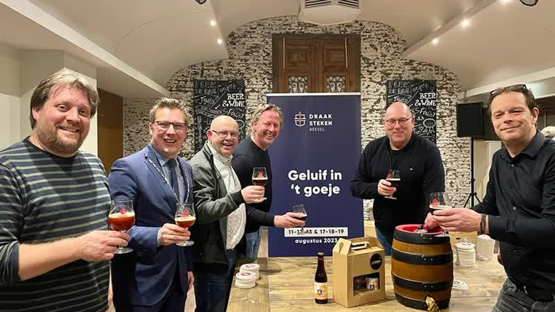 Het eerste vat Draakstaeker bier is vrijdag aangeslagen na afloop van de repetitieavond van het Draakste...