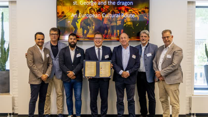 De bestuurders van de vijf plaatsen in Europa waar het verhaal van de legende van Sint Joris en de Draak...