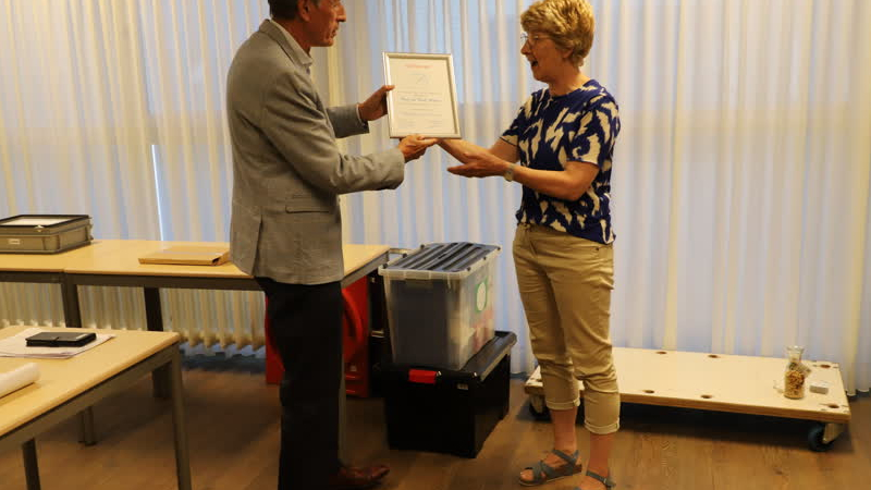 Tijdens de evaluatiebijeenkomst op de laatste dag van Fiets4Daagse De Peel is Gerrie van Hoof postuum be...