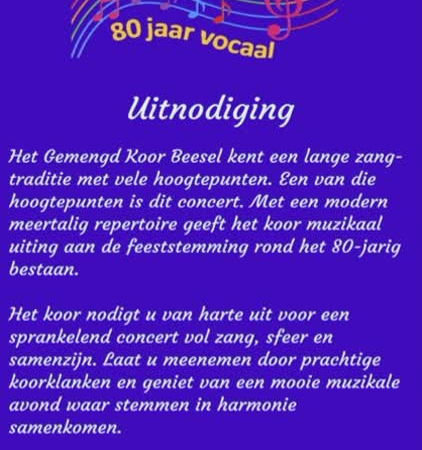 Gemengd Koor Beesel nodigt uit voor een concert vol zang, sfeer en samenzijn.