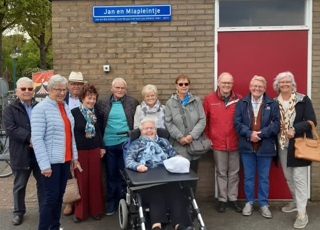 Het plein voor de kantine van sportpark De Starte van RKMSV is omgedoopt tot het ‘Jan en Miapleintje’....