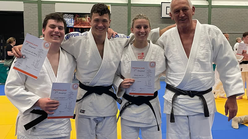 Drie leden van Judoclub Helden zijn zondag geslaagd voor hun dan-examen judo in Roermond. Daisy van Os e...