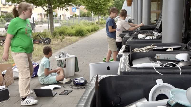 De leerlingen van basisschool De Diamant in Baarlo zijn volop in de weer met oude printers, kabels en co...
