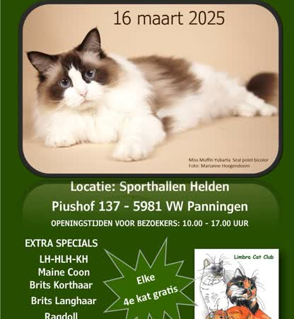Limbra Cat Club organiseert een internationale raskattententoonstelling in de Sporthallen Helden. Er zij...