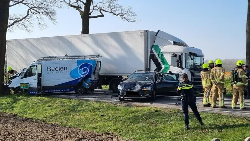Op de N273 in Kessel zijn zaterdagmiddag verschillende voertuigen met elkaar in botsing gekomen. Twee be...