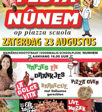 In Nunhem kun je op zaterdag 23 augustus genieten van een zomerse feestavond met een Italiaans tintje....