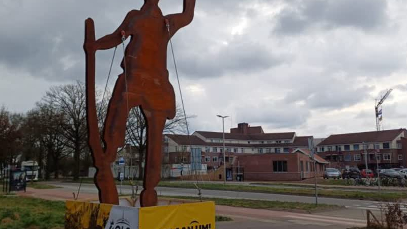 Bij het gemeentehuis in Heythuysen is woensdag een 6 meter hoog stalen beeld van 'D'n Um' geplaatst. Het...