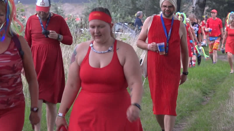 Zo'n honderd mannen en vrouwen renden donderdagavond door Baarlo. Daar vond de Red Dress Run plaats. Een...