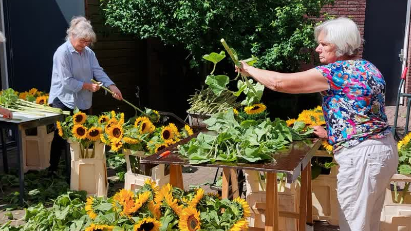 Zonnebloemen kleuren dit weekend het defilé en de kerk voor het OLS. Vrijwilligers waren vrijdag in de w...