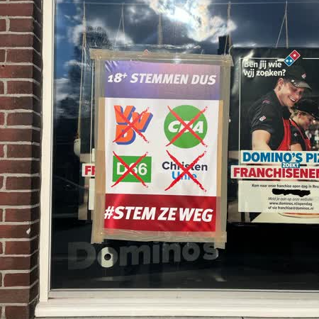 In Reuver hangen op verschillende plekken posters met de tekst ‘Stem ze weg'. Door logo's van verschille...