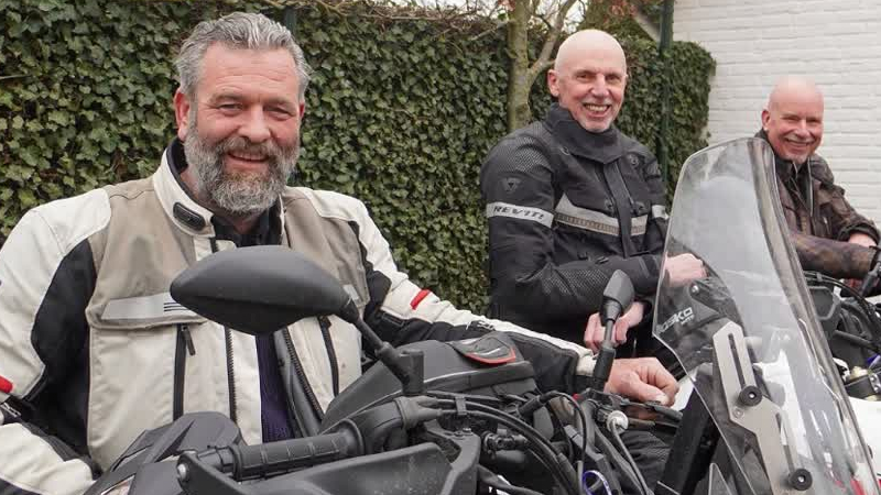 Drie Meijelnaren zijn zondag vertrokken voor een motorreis naar Tokyo. Geert-Jan Nijssen, Marini Wijlaar...