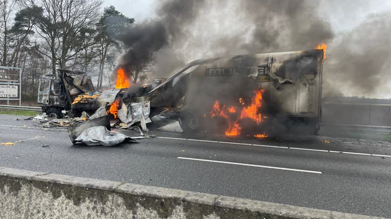 Een vrachtwagen is bij de afrit Panningen op de A67 vrijdagmiddag in brand gevlogen. De snelweg is enige...