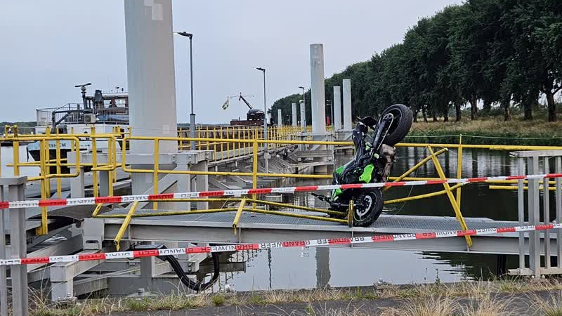 Een motorrijder heeft woensdagavond een flinke smak gemaakt bij de stuw in Baarlo. De motor is in de met...