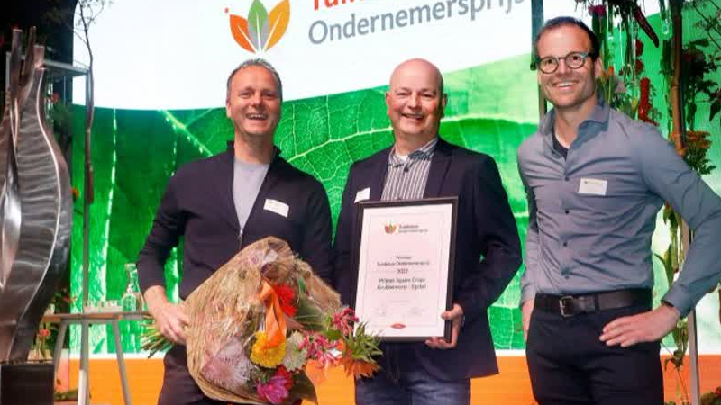 Wijnen Square Crops heeft donderdag de Tuinbouw Ondernemersprijs 2022 ontvangen. Het bedrijf teelt op tw...