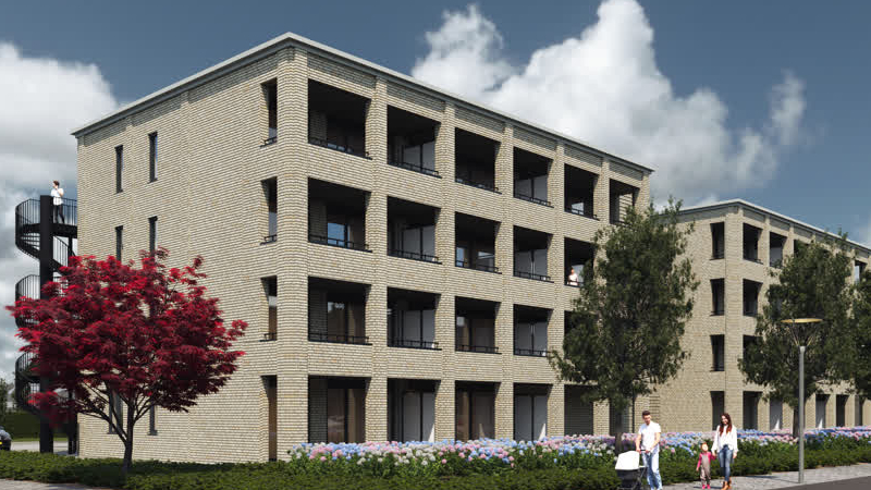 De 22 sociale huurappartementen die Wonen Limburg gaat bouwen aan de Raadhuisstraat in Panningen zullen ...
