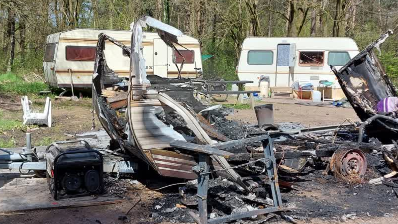 Er is niets meer over van de woonwagen die dinsdagavond is uitgebrand in de bossen aan de Heldenseweg in...
