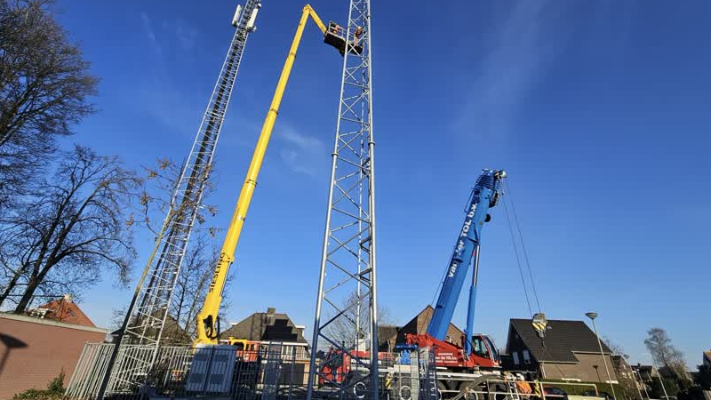 De zendmast van Vodafone aan de Rijksweg in Kessel wordt geplaatst. De bezwaren van inwoners zijn ongegr...