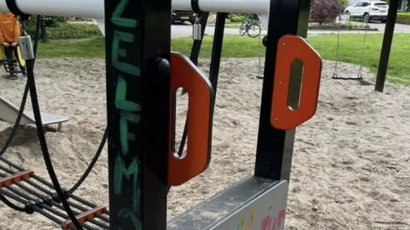 In een speeltuin in Meijel zijn een speeltoestel en prullenbak beklad met beledigende teksten. Vermoedel...