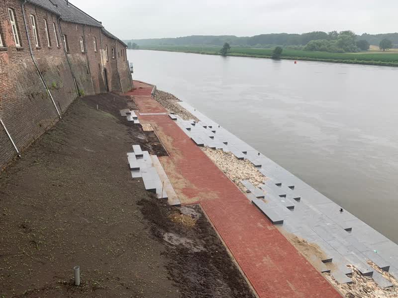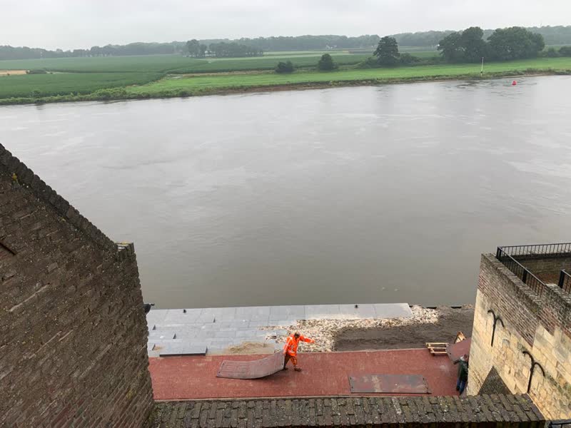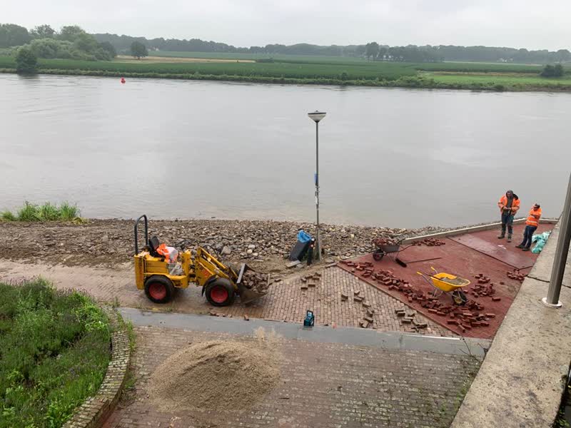 'Uitzonderlijk' noemt een woordvoerder van de gemeente Peel en Maas deze situatie in juli. "In het geval van hoogwater moet de Maasboulevard daar tegen bestand zijn. Maar het werk is nog niet klaar, en dat maakt het een uitdaging nu."