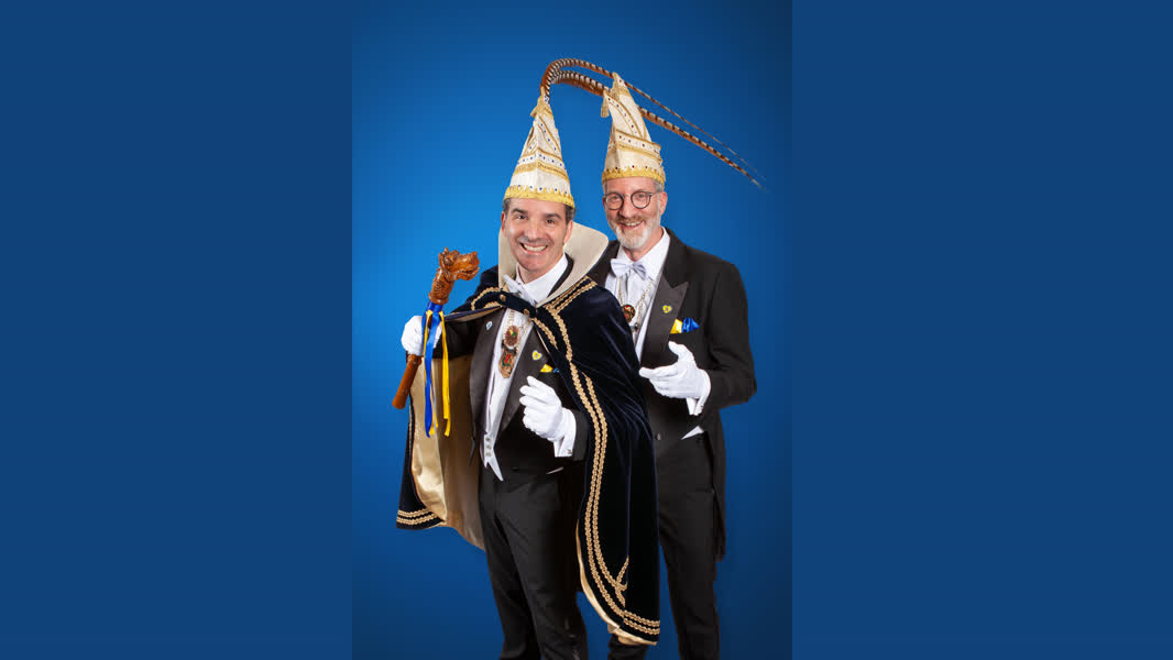 De spreuk slaat op hen allebei: prins Patrick (47) is al ruim vijftien jaar ceremoniemeester van CV de Drake, waarbij hij altijd met zijn ceremoniemeesterstok vooropgaat. Adjudant Marcel (51) slaat al meer dan 3x11 jaar de kleine trom bij De Drakekapel. Daarnaast is dit duo al heel wat jaren actief in het Beeselse carnavalsgebeuren. Prins Patrick I is al sinds 2004 bij de raad van 11, waar hij jarenlang de huisfotograaf was van CV de Drake. Maar ook al voordat hij bij de vereniging kwam, was hij al als vrijwilliger creatief betrokken bij de Beeselse carnaval als decorschilder voor de Bóntje Revue en illustrator en later vormgever, van carnavalskrant De Draaksjtaeker. Adjudant Marcel is al sinds 2011 voorzitter van CV de Drake en actief in diverse commissies.