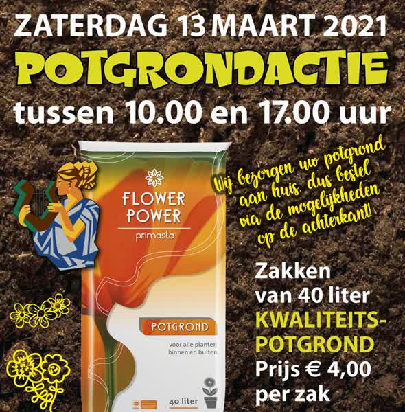 Bestel en betaal van tevoren en de potgrond wordt zaterdag 13 maart door de leden van de fanfare tussen 10.00 en 17.00 uur aan huis bezorgd.