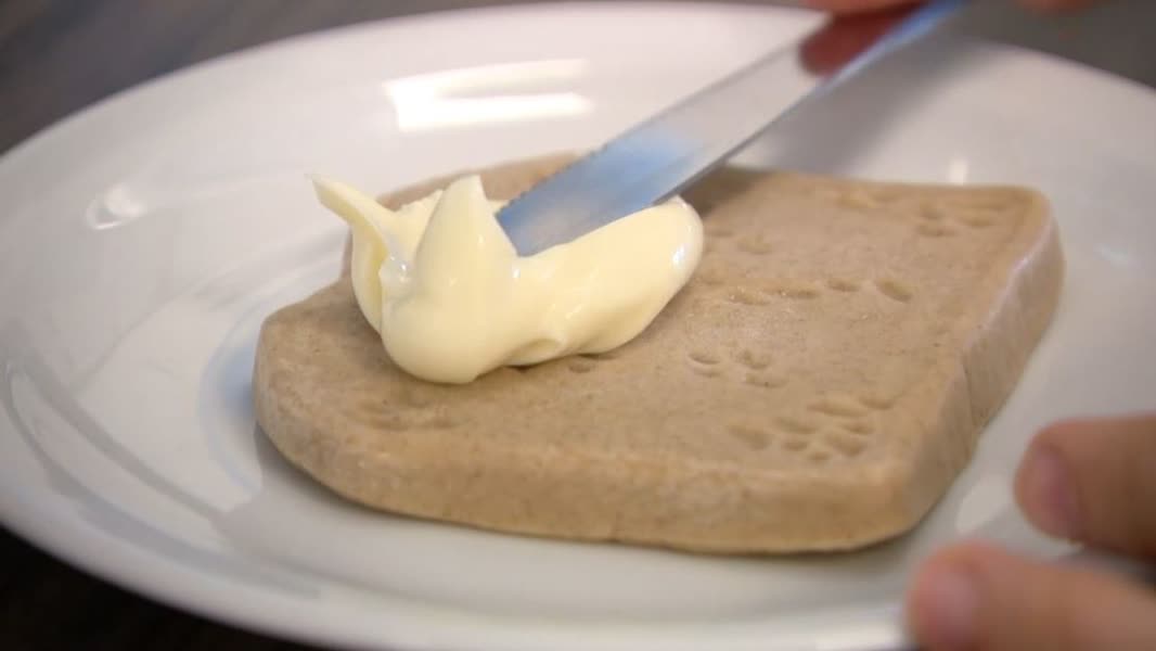 Evelien: “Met het projectteam zijn we gaan pionieren. We zijn zelf gaan koken, proeven en testen. Onze koks lieten al hun creativiteit erop los. En we gingen in gesprek met onze leverancier. We wilden zoveel mogelijk ‘normaal eten’ nabootsen. Zowel in smaak als hoe het eruit ziet. Zo kwamen we uit op de ‘pudding-boterham.’ Het heeft de vorm en smaak van een echte boterham. Je kunt het zelfs besmeren met groentespread, paté, smeerkaas of (suikervrije) jam. Verder bieden we een maaltijdsoep, pasta-bolognese en bami aan.”