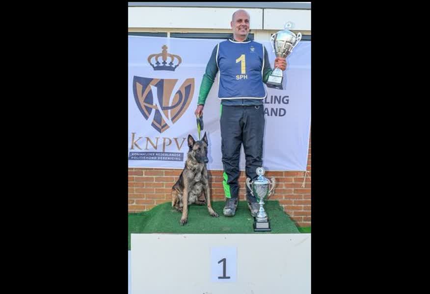 Raanan Wassen uit Beringe is samen met zijn Mechelse herder Lima zaterdag Nederlands Kampioen Speuren geworden.