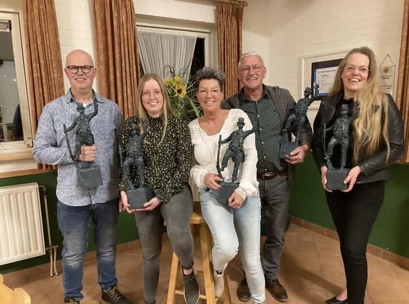 Bij de jaarvergadering traden ook drie bestuursleden af. Het gaat om bestuursleden Lilian van de Kruijs, Corrie Ghielen en Arnold Koopmans. Corrie en Arnold werden vanwege hun vele verdiensten voor de schutterij benoemd tot ere-bestuursleden.