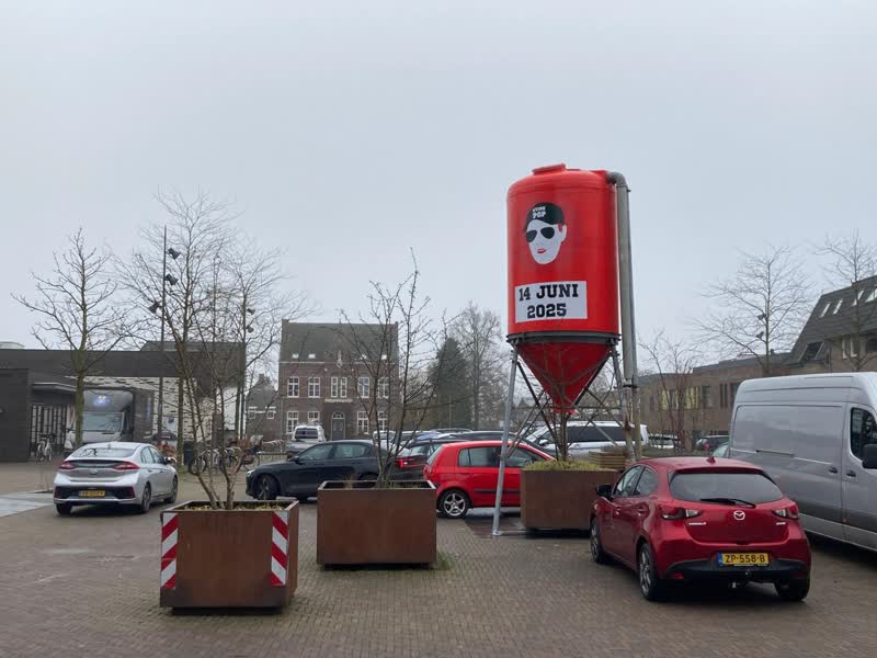 Het centrum van Maasbree heeft er een opvallend object bij. Op de parkeerplaats bij de kerk prijkt sinds dit weekend een grote rode silo.