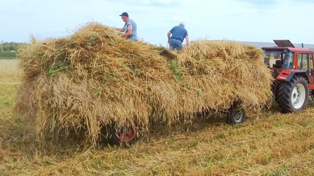 Normaal gesproken wordt de rogge na de oogst eerst op tijlen gezet om verder af te sterven en te drogen, maar vanwege de voorspelde onweersbuien werd de oogst dezelfde middag volledig opgeladen.