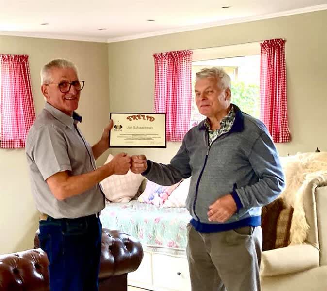 Jan Schaareman uit Egchel is zaterdag op de ledenvergadering van de Belgische hoenderclub benoemd tot erelid. Schaareman is fokker van de Brakel in groot en kriel.