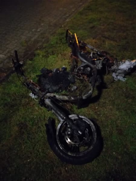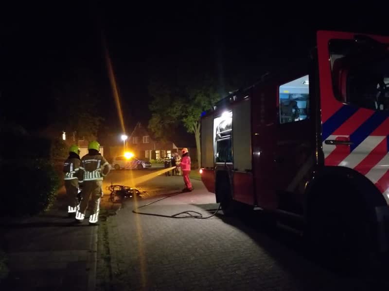 De brandweer werd gealarmeerd voor een buitenbrand.  De scooter stond midden op straat in brand.