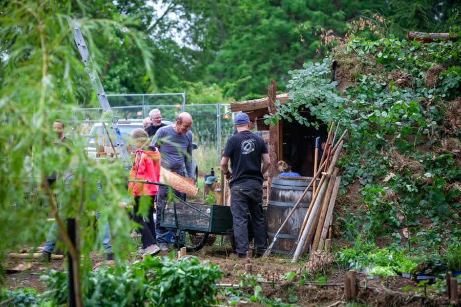 De spelers van het Draaksteken bouwen hun eigen huisje. Tijdens het bouwweekend hielpen alle spelers mee het speelveld klaar te maken voor de zes voorstellingen.
