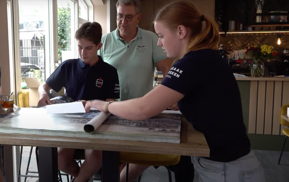 Afgelopen zaterdag zat Roger op de tribune bij de tweede voorstelling van het Draaksteken. “Toen ik het spel zag, kreeg ik kippenvel. 500 Mensen op het veld, 400 vrijwilligers… ze doen dat toch maar even”, begint hij. Een dag later, op zondag, werd een groepsfoto gemaakt. Dat bracht Roger op een idee. “Toen dacht ik: ‘hoe mooi is het om een blijvende herinnering te geven aan al die medewerkers?’. Met name ook voor die kinderen, hè. Hoe gaaf is het als zij een poster krijgen en die boven hun bed kunnen hangen? Die kinderen hebben we over zeven jaar weer hard nodig. Eigenlijk hebben we iedereen dan weer nodig”.