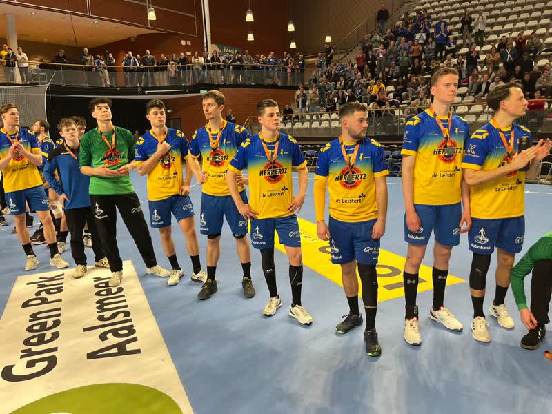 De spelers van Bevo Hc na de verloren bekerfinale tegen Aalsmeer.