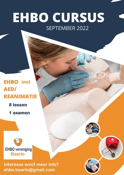 EHBO Baarlo start bij voldoende deelname in september met een EHBO-cursus. De cursus wordt gegeven op de woensdagavond. Wil je meer informatie stuur dan een e-mail naar ehbo.baarlo@gmail.com.
