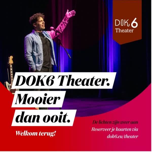 DOK6 Theater mag weer open en biedt een speciale actie aan. Wil je met voorrang een pakket bestellen stuur dan een mail naar theater@dok6.eu en geef zes voorstellingen door waar je kaarten voor wilt bestellen en hoeveel kaarten je per voorstelling wilt. De zesde voorstelling krijg je cadeau!De reguliere kaartverkoop start op vrijdag 18 juni om 12.00 uur. Meer informatie en voorwaarden klik hier . www.dok6.eu/theater .